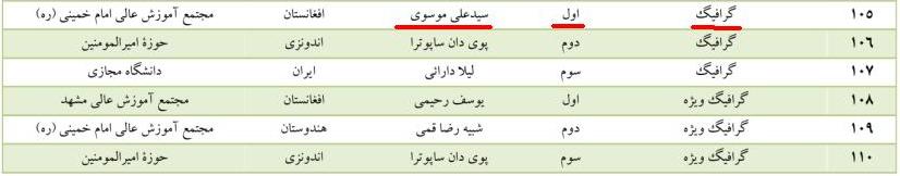نفرات برتر رشته گرافیک پنجمین چشنواره فرهنگی تبلیغی طوبی
